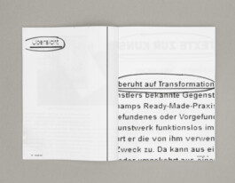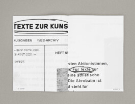 Like the original TEXTE ZUR KUNST magazines, the publication „ALLES GUT“ starts with an index and a preface. The main part then shows 250 screenshots taken at the webarchive of the currently 250 artist editions of TEXTE ZUR KUNST. Highlighted passages in the photographed texts can be followed as a continuous text throughout the book, which is also shown as a continuous text in the preface. Through the deconstruction of the descriptions of the objects in the canon a self-referencial text piece is formed, which appropriates the language of mediation and critique, and uses its label as material. A post-production „between affirmative desire and critical distance“, which could be understood as both inscription and break-up of the canonizing label of TEXTE ZUR KUNST.