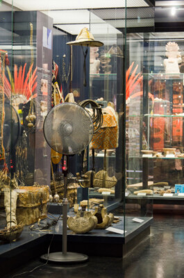 Climate is an essential as well as fragile dimension of the museum and typifies the artificiality of a museum-like area as a self-contained cosmos. The produced light airflow, that would not have been recognizable outside of the museum, displays the institutional hermeticism and at the same time reveals the vulnerability of a museum and its fear of disturbance. In the floating state between exhibited object and museum inventory, the ventilators adresses the shift of meaning of the ethnographical exhibit from lived objects to petrified representatives inside the museum collection.