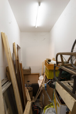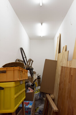 In 2016, a temporary exhibition space was created in a small room in a shed in the backyard of a residential building (Paul Gruner Straße in Leipzig). Before the installation of the white cube, the room was filled to the ceiling with rubbish, leftovers from the residents of the house, unused and forgotten objects and relics from past decades. After the installation of the room and its temporary use as an exhibition space until 2018, it remained unused for over six years. During this period, the residents of the house used the open space as a storage room again. The publication "No Show (2018-2024)" shows the accumulation of the objects and the transformation of the vacant space.